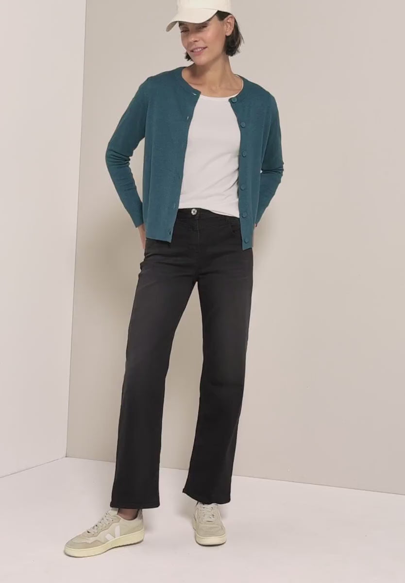 Denna damkofta från CECIL har en klassisk rund halsringning och en hellång knappslå. Den bekväma stickade kvaliteten garanterar bekväm användning för vardagsbruk. En mångsidig kofta som är lätt att kombinera.