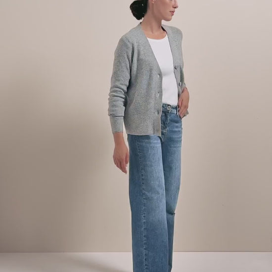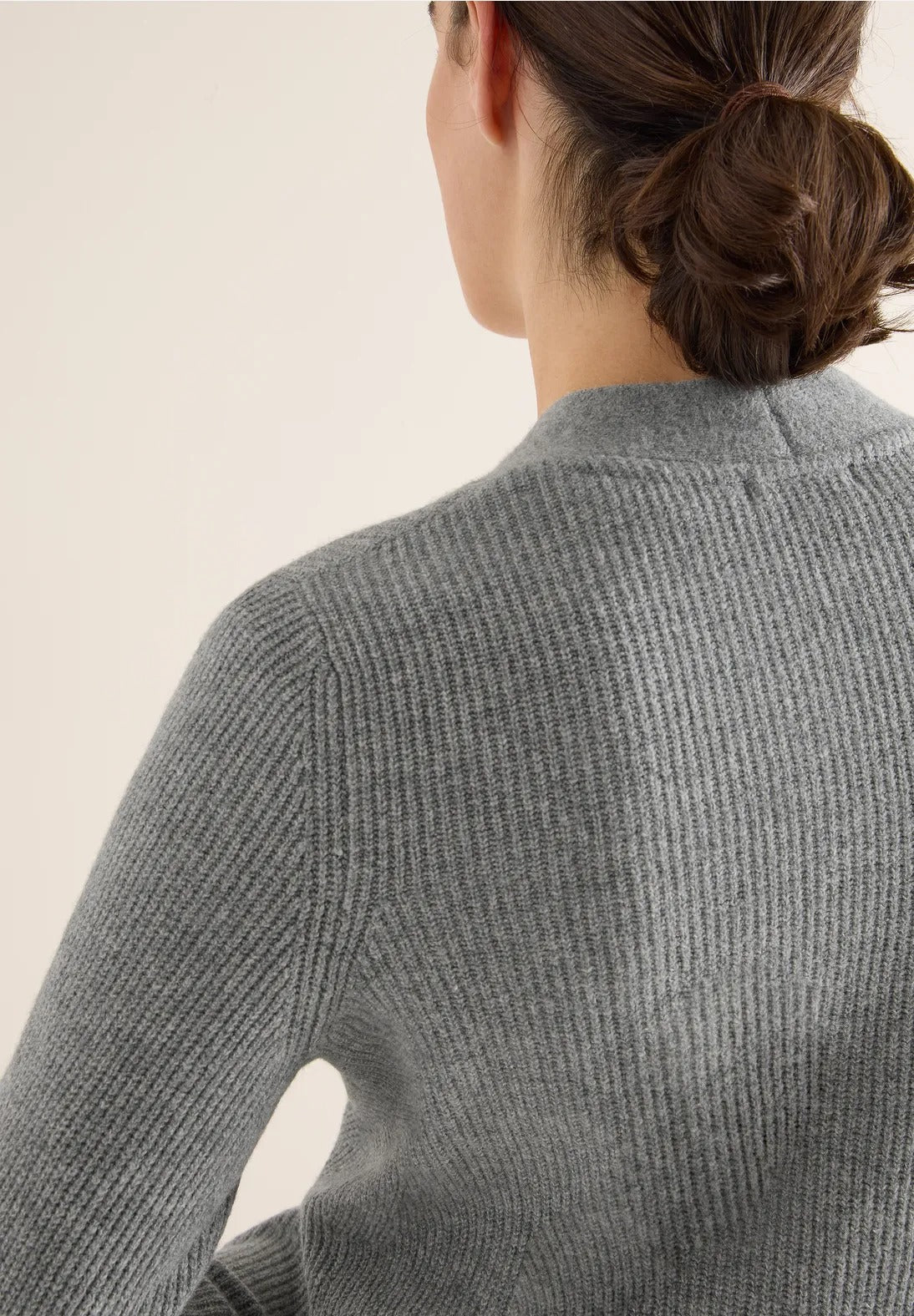 Denna damkofta från CECIL imponerar med sin mjuka bomullskvalitet och fina texturerade stickade detaljer. V-ringningen med knappslå och ribbade muddar ger koftan en klassisk men modern touch. Ett perfekt val för bekväma men ändå snygga outfits med karaktär.