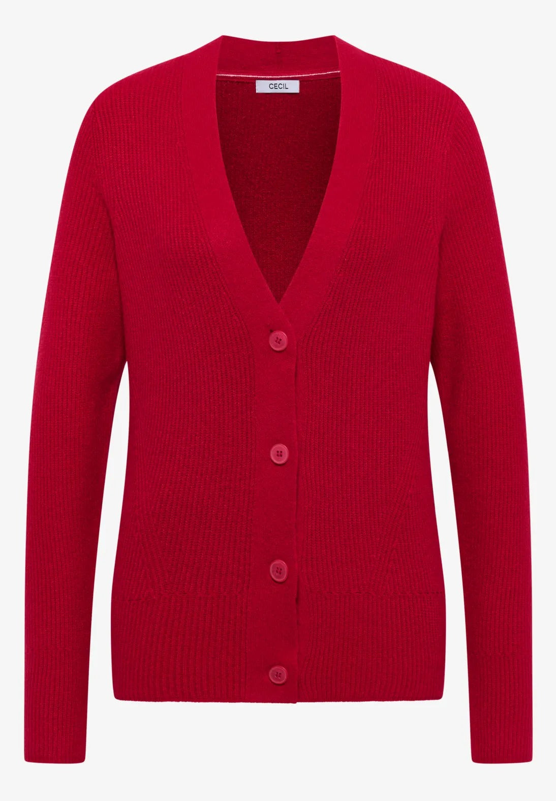 Denna damkofta från CECIL imponerar med sin mjuka bomullskvalitet och fina texturerade stickade detaljer. V-ringningen med knappslå och ribbade muddar ger koftan en klassisk men modern touch. Ett perfekt val för bekväma men ändå snygga outfits med karaktär.