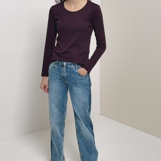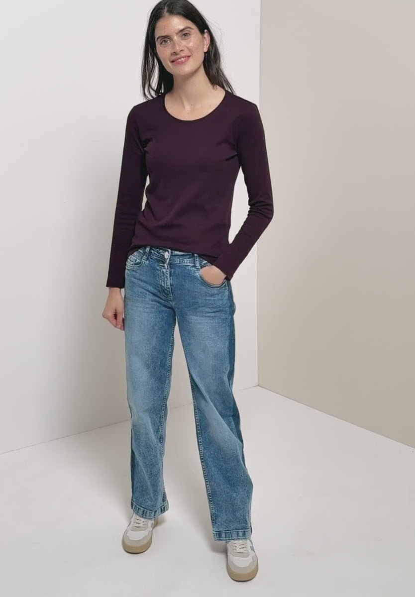 Pia långärmad skjorta för kvinnor från CECIL är ett mångsidigt allroundplagg för vardagen. Med en klassisk rund halsringning, långa ärmar och ren bomull erbjuder den naturlig komfort. Perfekt att kombinera – oavsett om den bärs ensam eller som ett lager-på-lager-plagg.