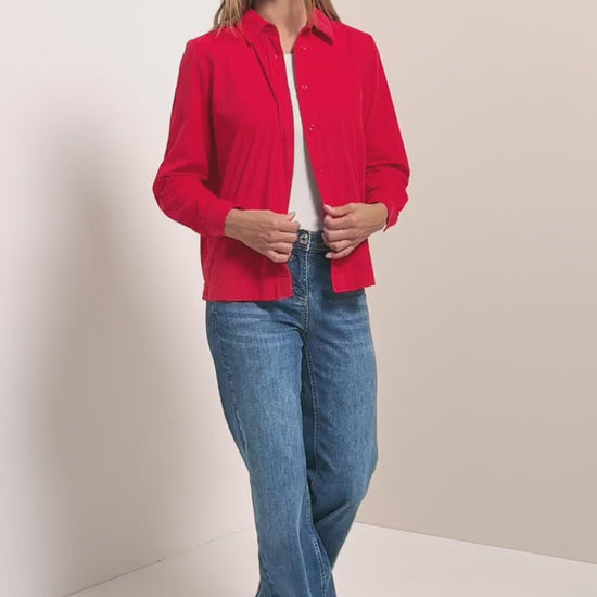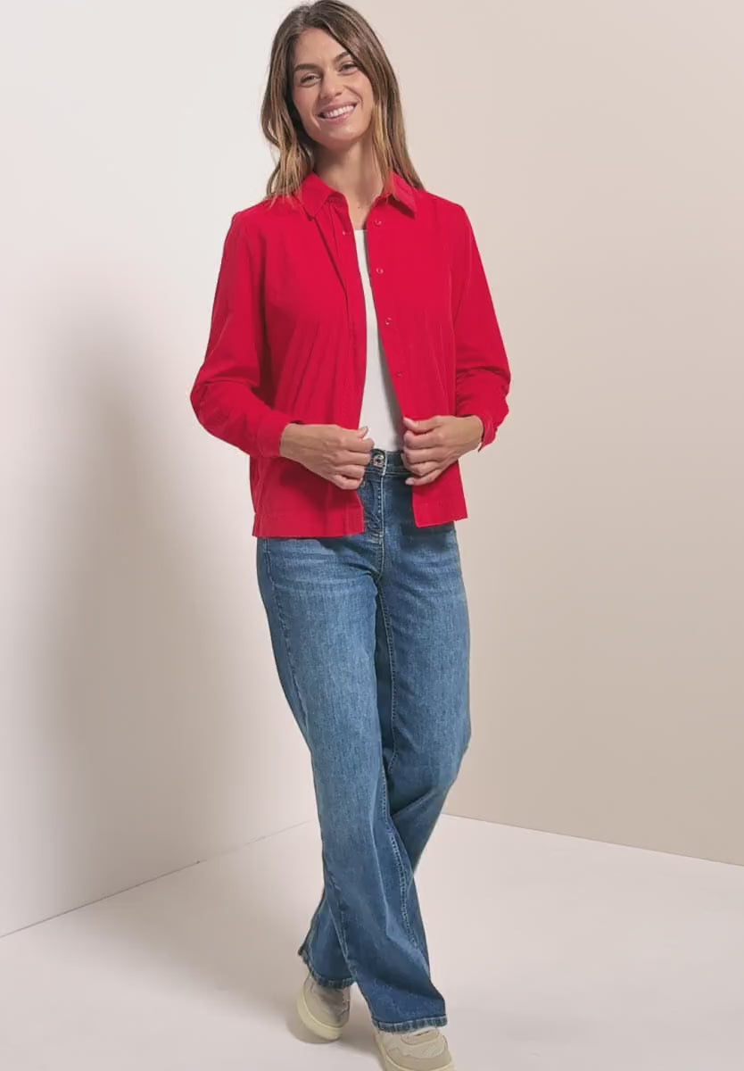 Denna manchesterblus från CECIL för kvinnor är tillverkad av ren bomull och har ett mjukt manchestertyg. Skjortkragen och den långärmade skärningen med knappar i ärmsluten gör den till ett mångsidigt plagg. Perfekt för en strukturerad, avslappnad look.