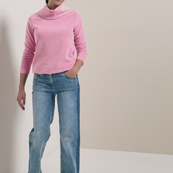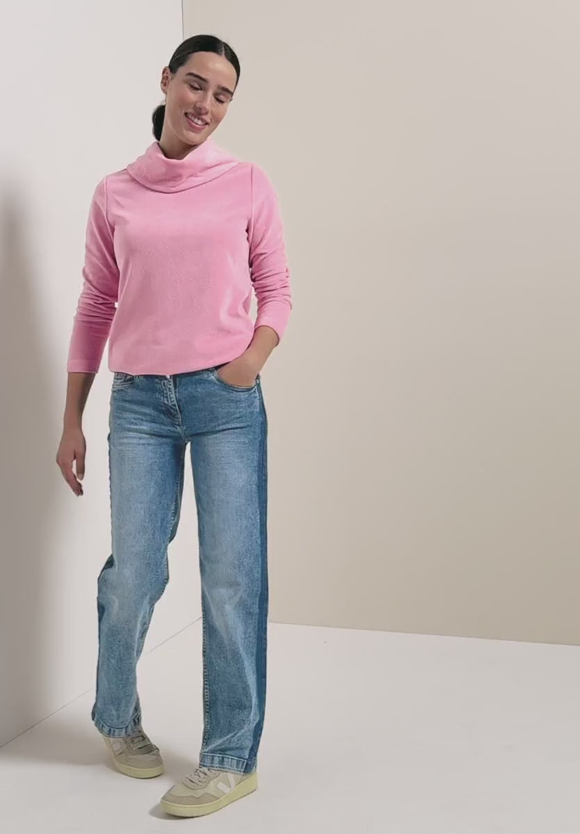 Denna manchestertröja för kvinnor från CECIL, med sin stora krage och fina manchestertyg, ger din look moderna höstvibbar. Den elastiska fållen garanterar en bekväm passform, och de långa ärmarna gör den idealisk för svalare dagar. En snygg blickfångare med en feel-good-faktor.