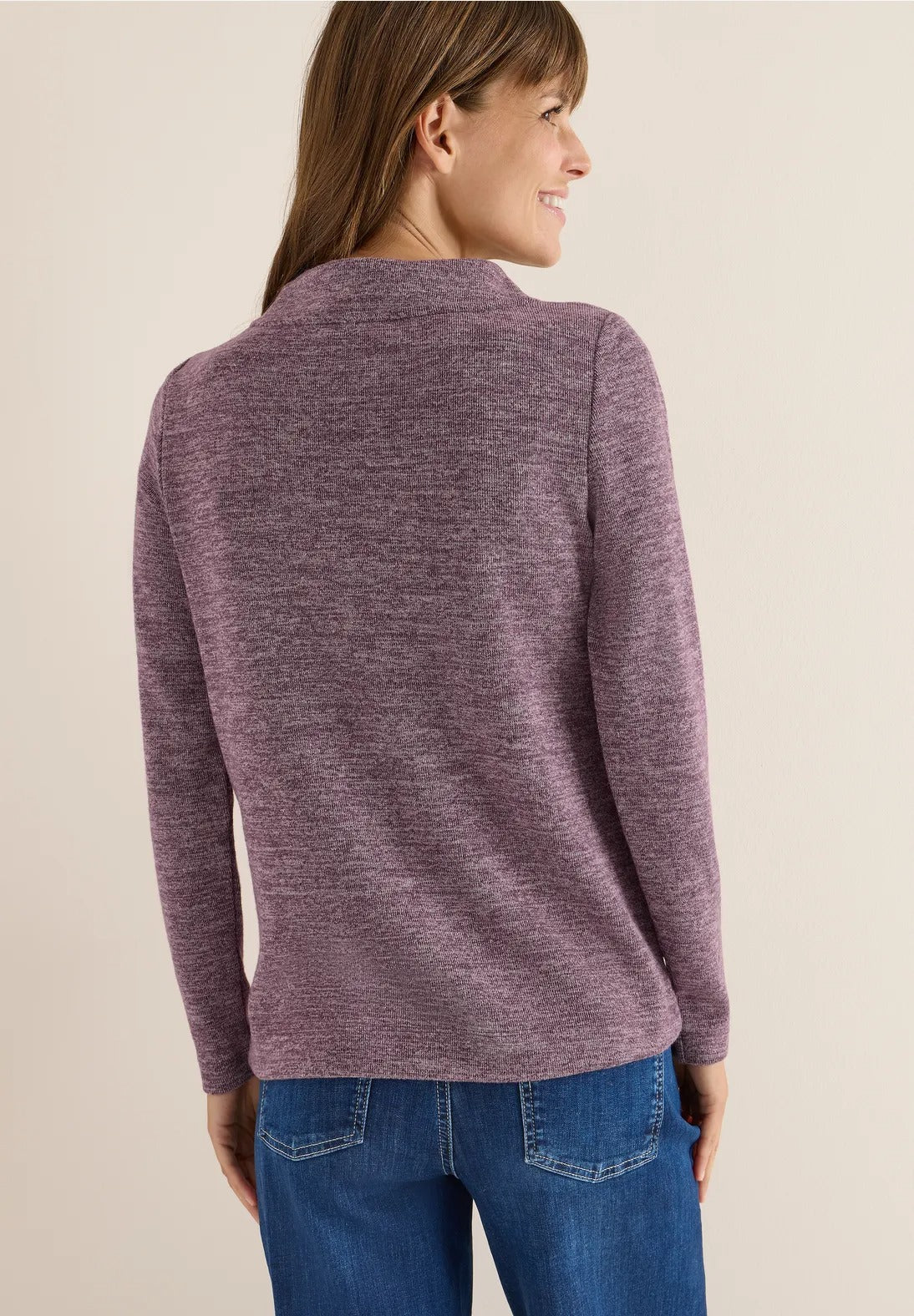Denna ribbade damtröja från CECIL imponerar med sin mjuka viskosblandning och melerade look. Travkragen med dragsko ger skjortan en modern touch, medan den bekväma passformen garanterar en känsla av välbefinnande. Perfekt för snygga, avslappnade looks.