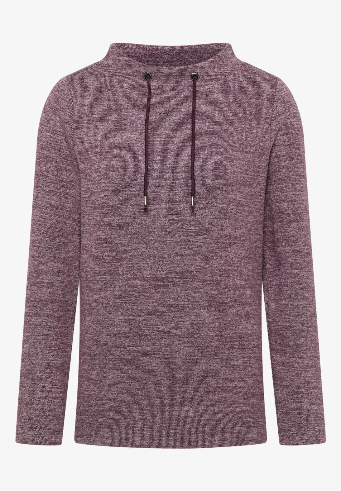 Melerad ribbad tröja med trattkrage, vinröd