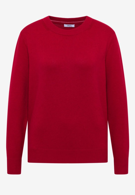 Mjuk tröja med rund hals, röd