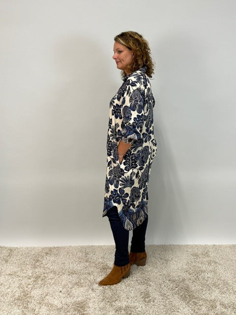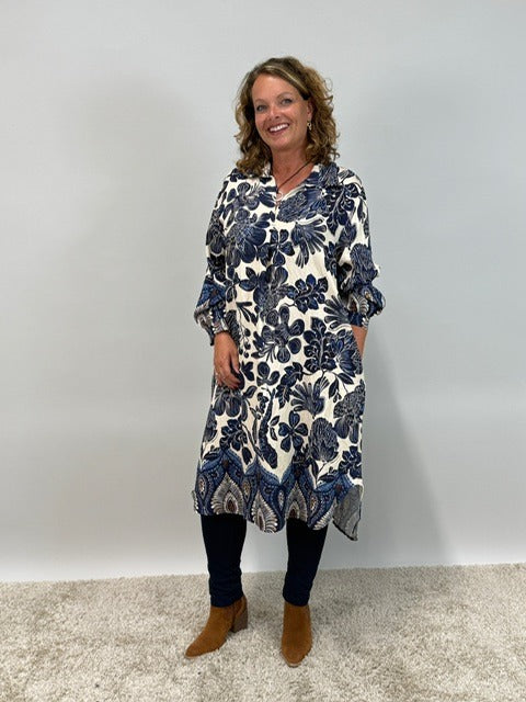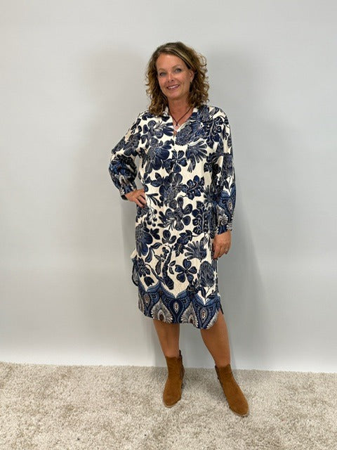 Mönstrad klänning med V-hals från Mixbyheart, marin
