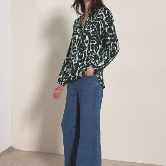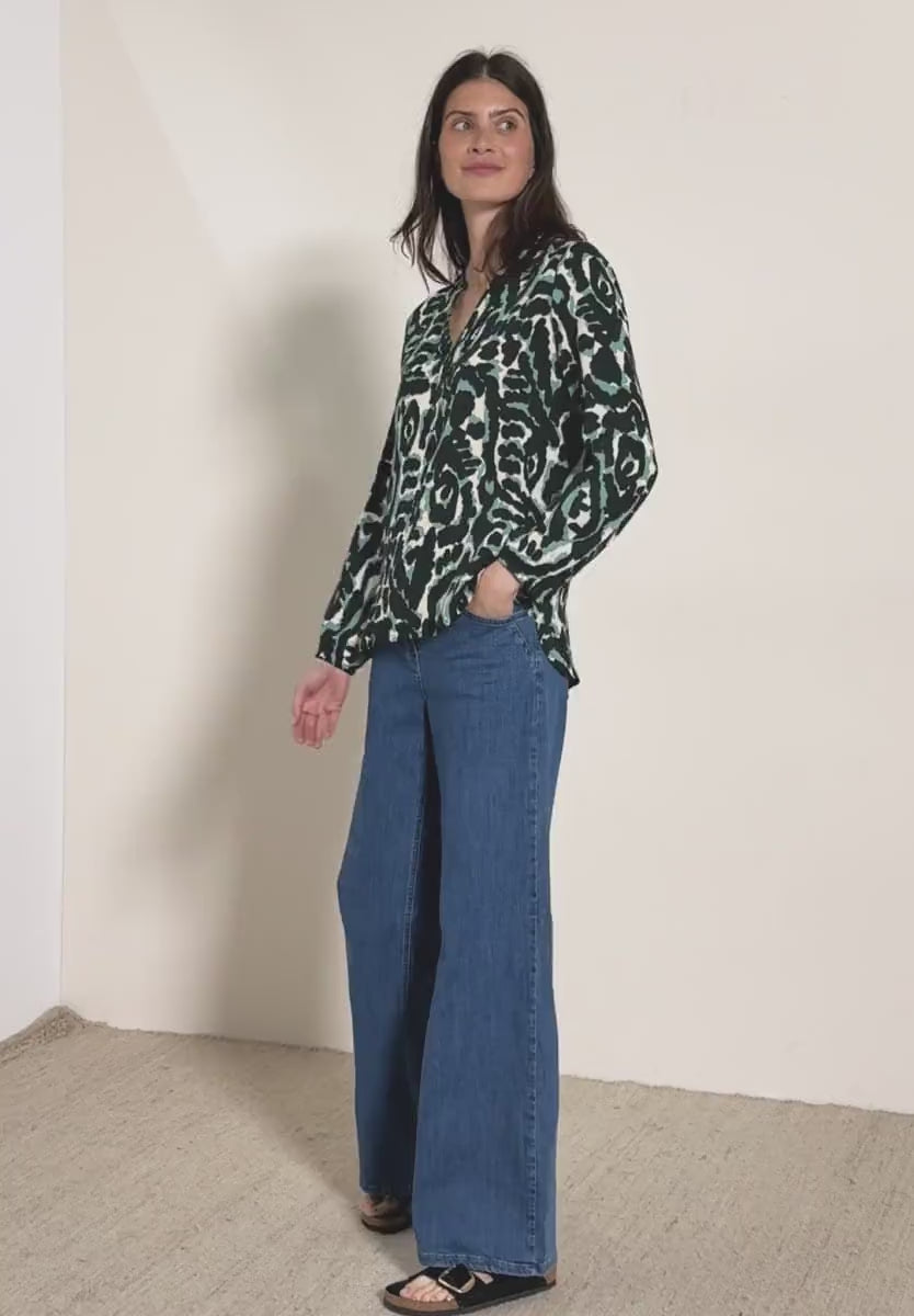 Denna mönstrade tunika från CECIL för kvinnor sätter en trendig accent med sitt grafiska tryck. Mjuk viskos möter avslappnade detaljer som en slits i halsen med dekorativ knappslå och elastiska manschetter. Perfekt för bekväma outfits med en somrig touch.