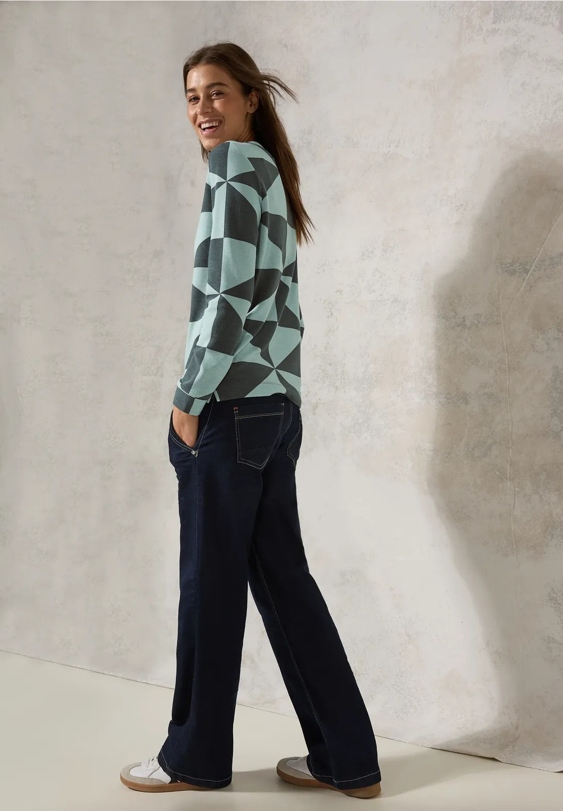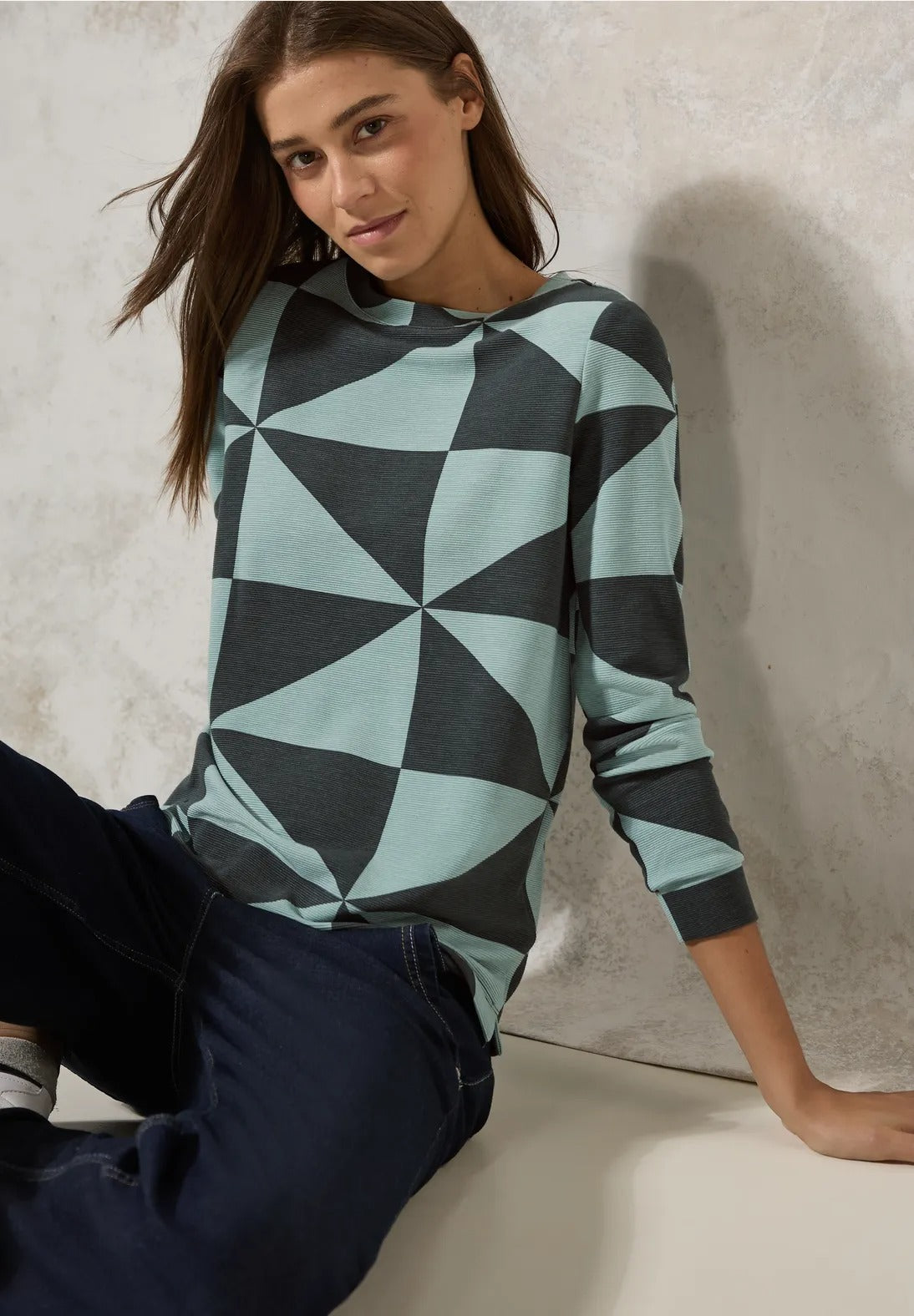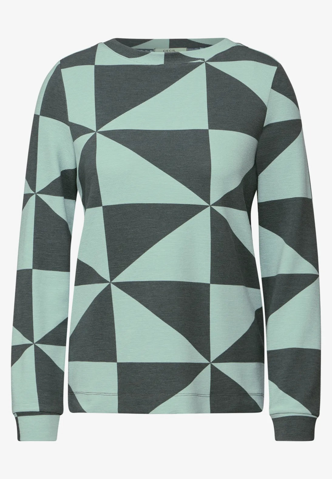 Den mönstrade ottomanska skjortan från CECIL för kvinnor ger din look moderna accenter med sitt grafiska mönster. Den rundade halsringningen och de långa ärmarna garanterar komfort, medan sidoslitsarna i fållen fulländar looken.