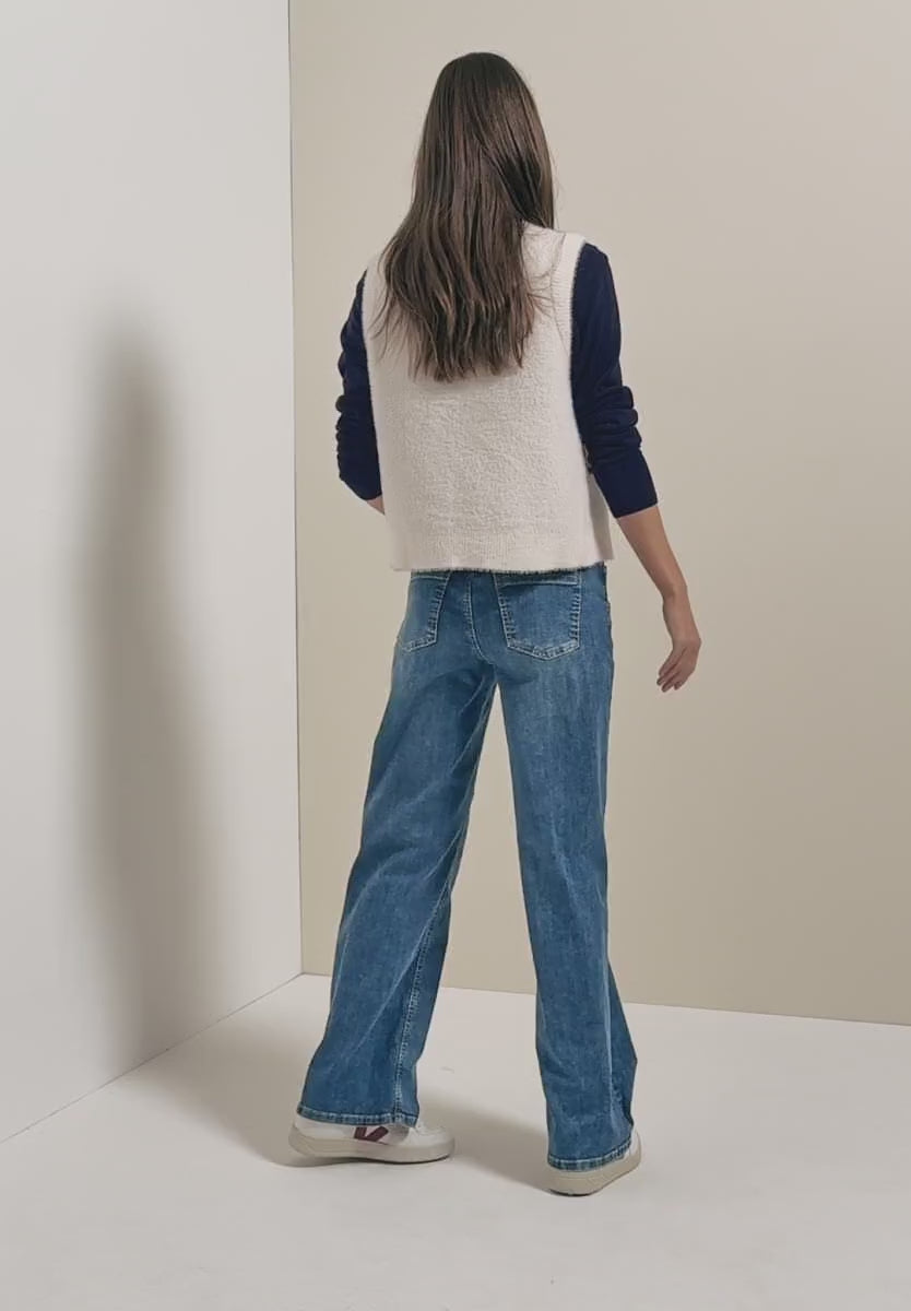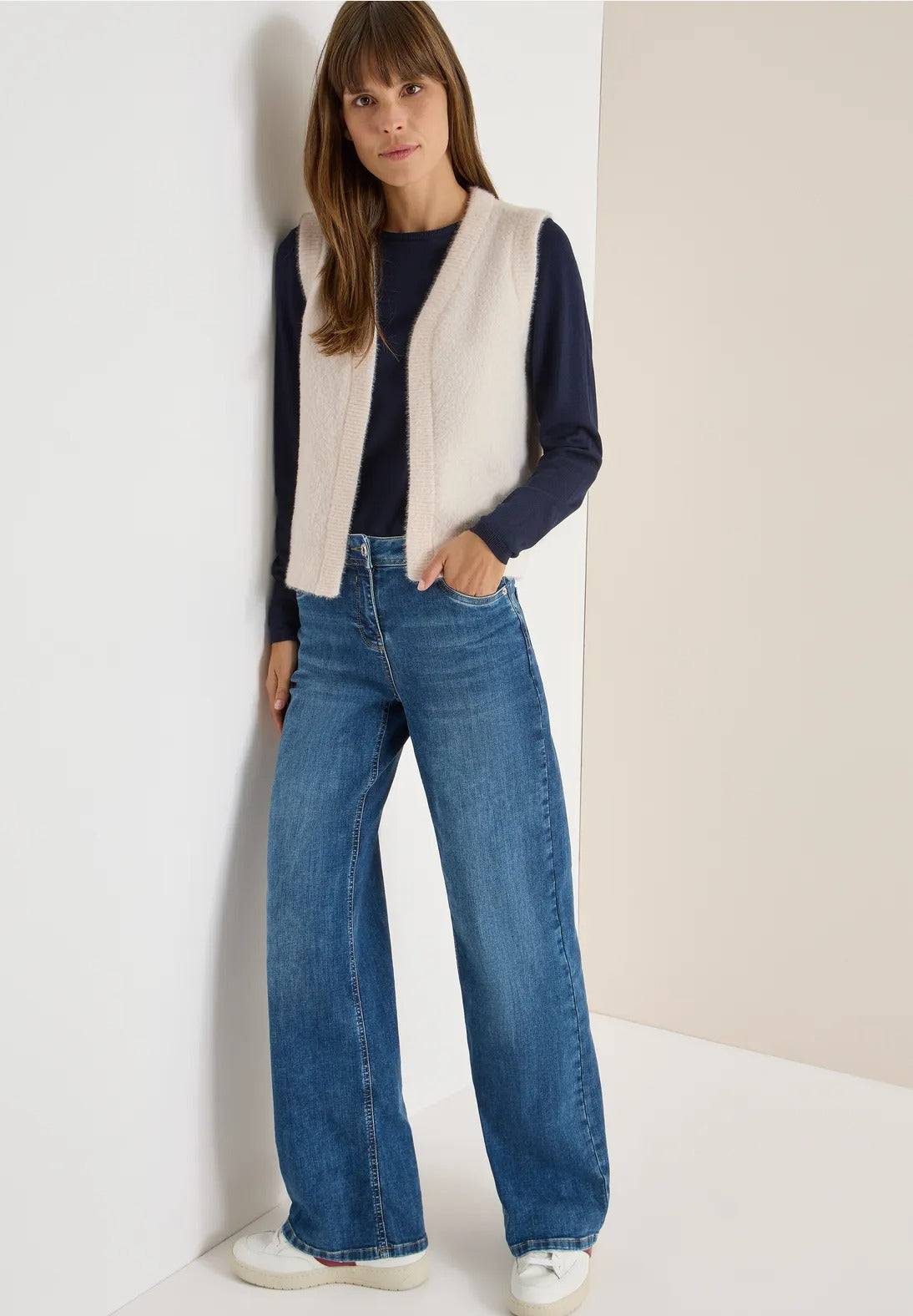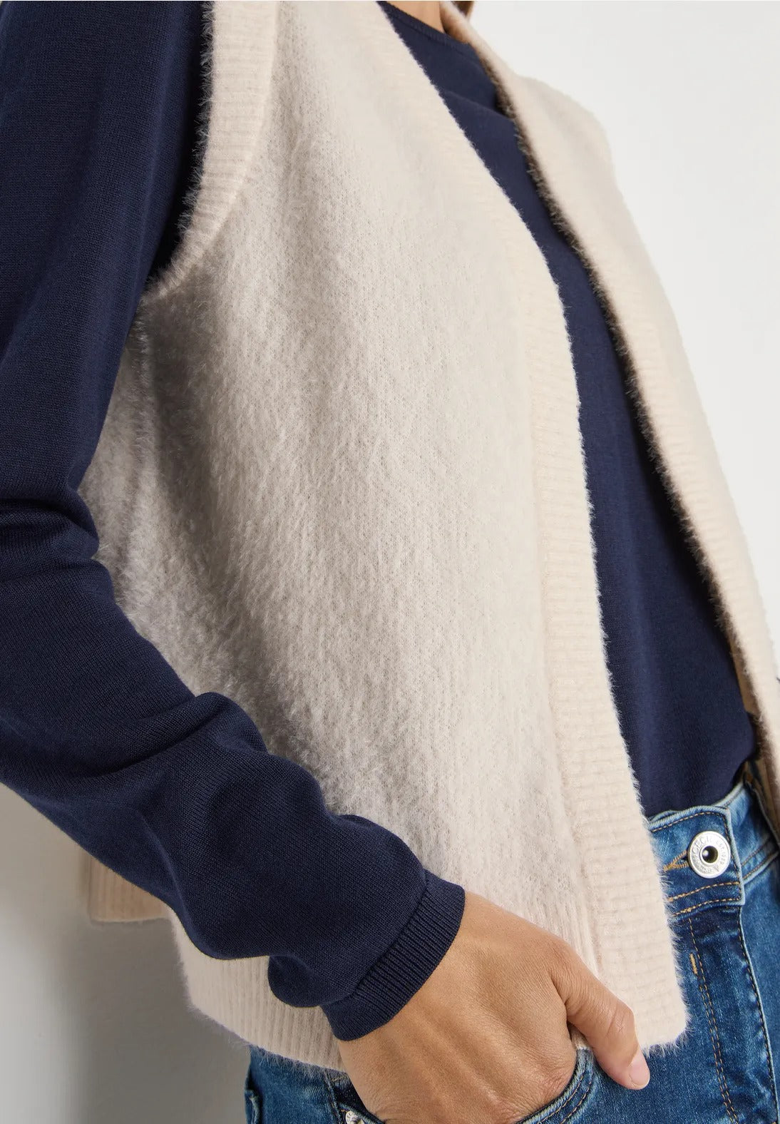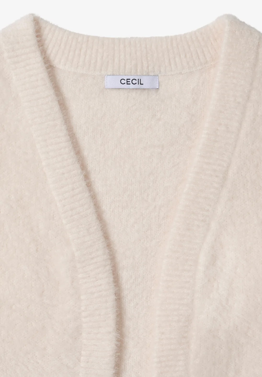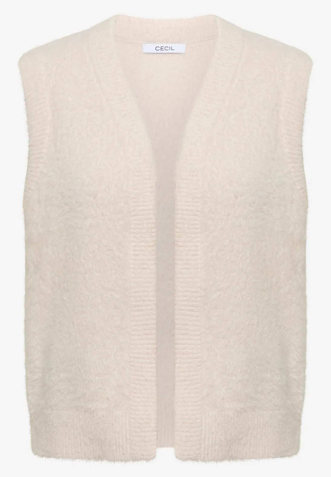 Denna öppna väst från CECIL för kvinnor imponerar med sitt mysiga fjädergarn och exceptionellt mjuka känsla. Med sin ärmlösa skärning är den perfekt för mysiga lager-på-lager-plagg och ger din outfit en touch av lätthet. En enkel favorit för mysiga vardagsstunder.