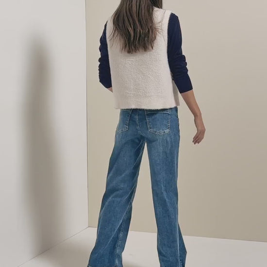 Mjuk öppen väst i fjädergarn