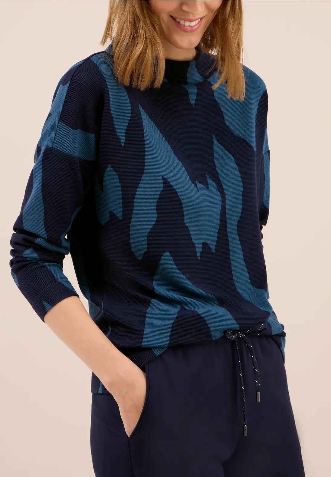 Den ottomanska tröjan från CECIL för kvinnor har ett grafiskt mönster och en bekväm trattkrage. Den stretchiga viskosblandningen och den långärmade skärningen ger exceptionell komfort. Perfekt för moderiktiga vardagskläder.
