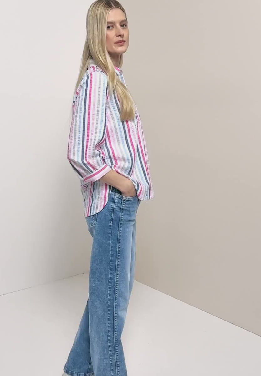 Randig blus i seersuckerkvalité med 3/4 ärm