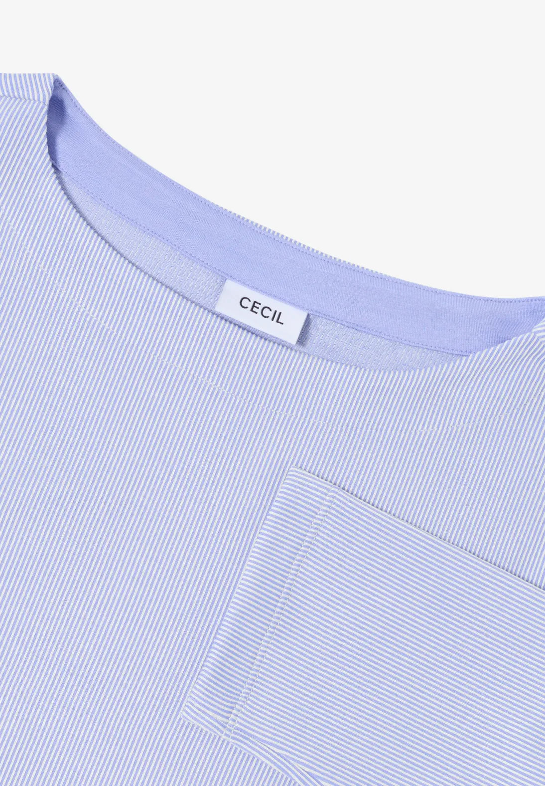 Denna randiga tröjan från CECIL för kvinnor har en feminin båthalsringning och ett fint randigt mönster. 3/4-ärmarna och den resår i nederkanten ger en bekväm passform. Perfekt för en avslappnad look med en nautisk touch.