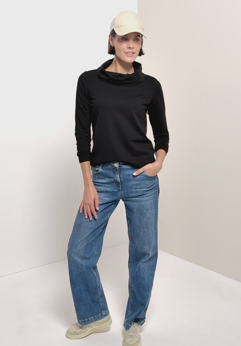 Denna damtröja från CECIL imponerar med sin mysiga krage och avslappnade skärning. Den elastiska fållen och den mjuka modalblandningen med stretch ger en särskilt bekväm passform. Perfekt för mysiga looks med en moderiktig touch.