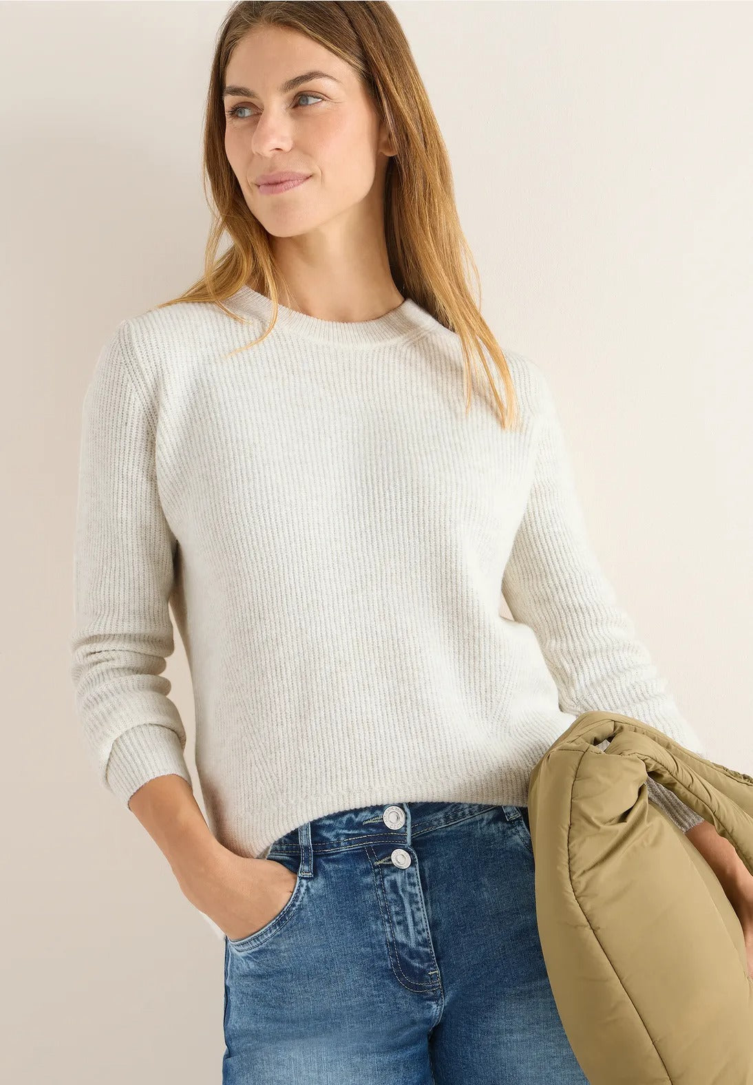 Tröja med strukturdetaljer, eggskal melange