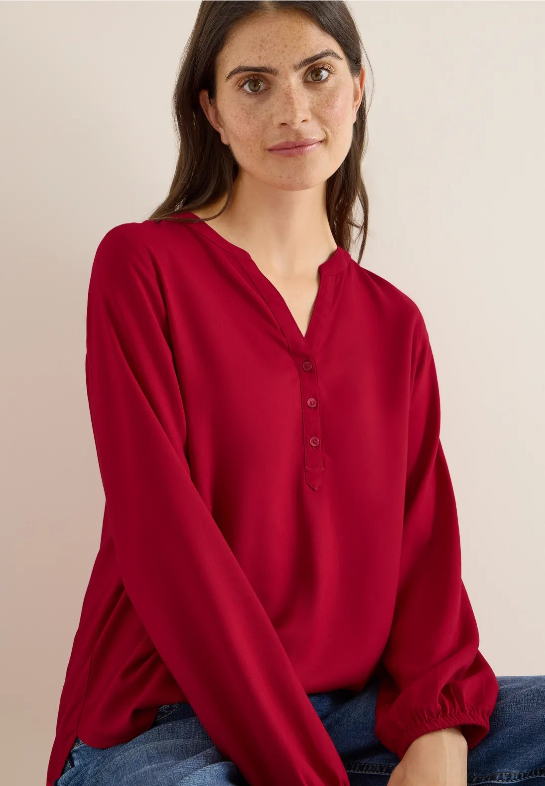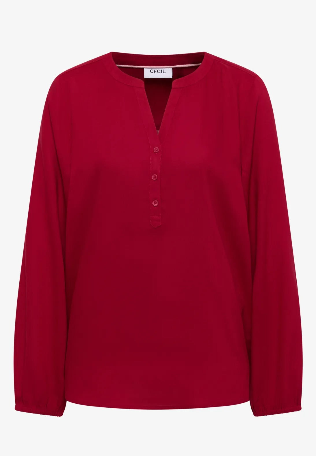 Denna enfärgade blus från CECIL för kvinnor imponerar med en feminin slits i halsen och dekorativ knappslå. Långa ärmar med elastiska muddar och rundad nederkant ger en avslappnad passform, medan den mjuka viskosen känns bekväm mot huden. En snygg allroundblus för varje dag.
